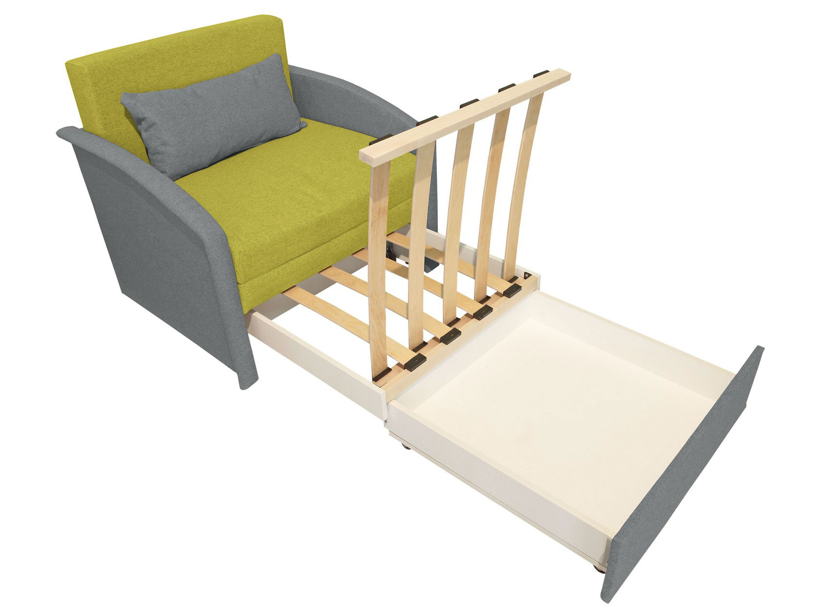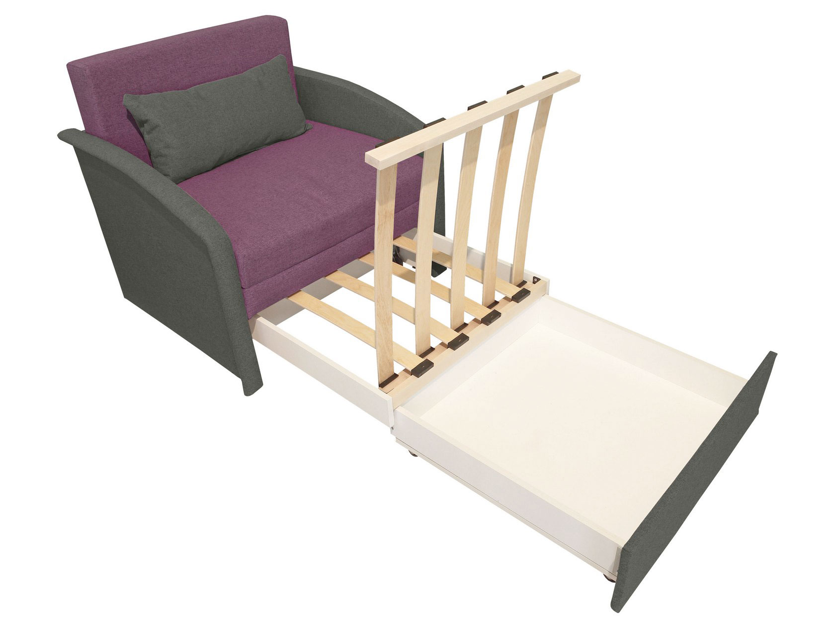 Модель оснащена удобным ящиком для белья и легко раскладывается на время сна. В сложенном виде кресло не занимает много места, что особенно важно для экономии пространства в небольшой комнате. Обивочная ткань устойчива к истиранию и гипоаллергенна.